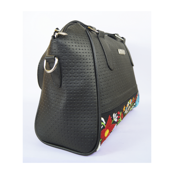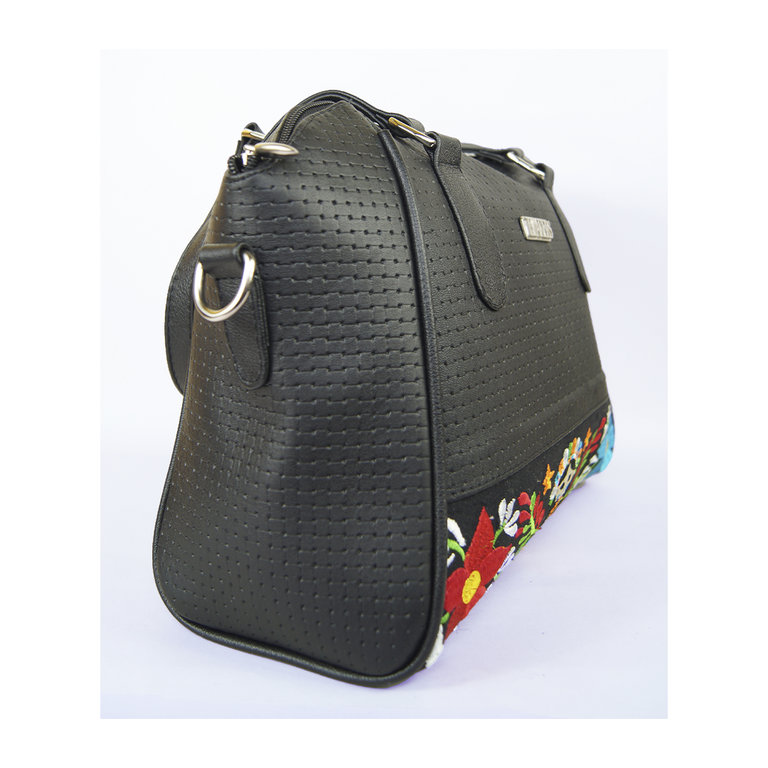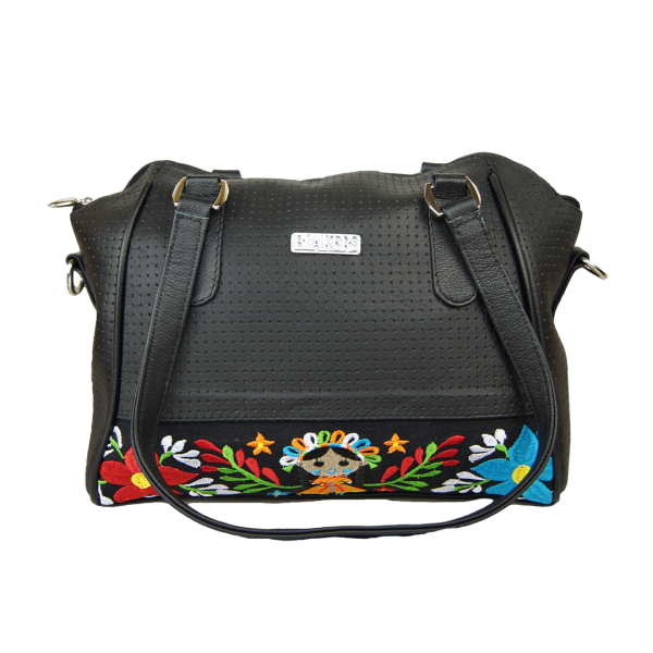 Fina bolsa de dama, exterior en fina piel Genuina de borrego peli buey. “Aplicación bordado temático mexicano”